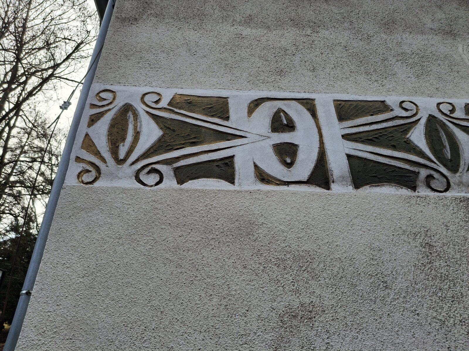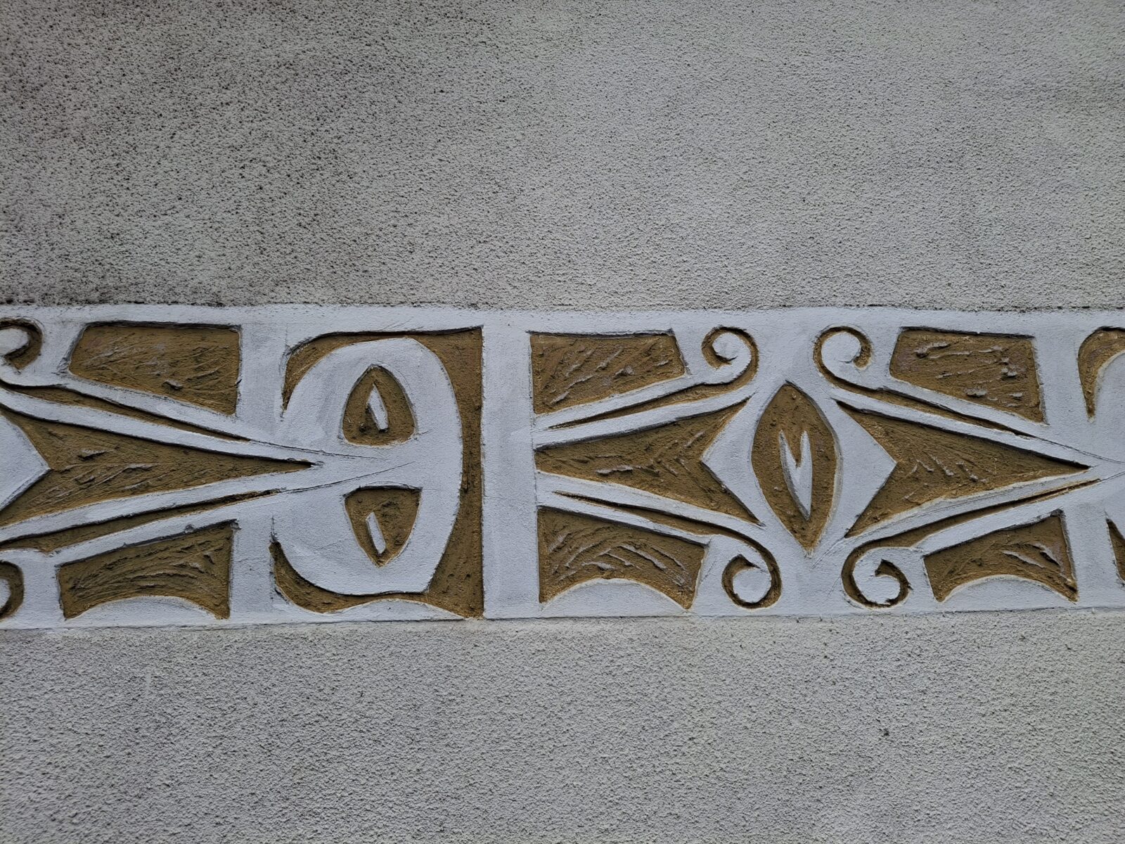 dekoracja elewacyjna / relief tynkarski z elementami typografii architektonicznej