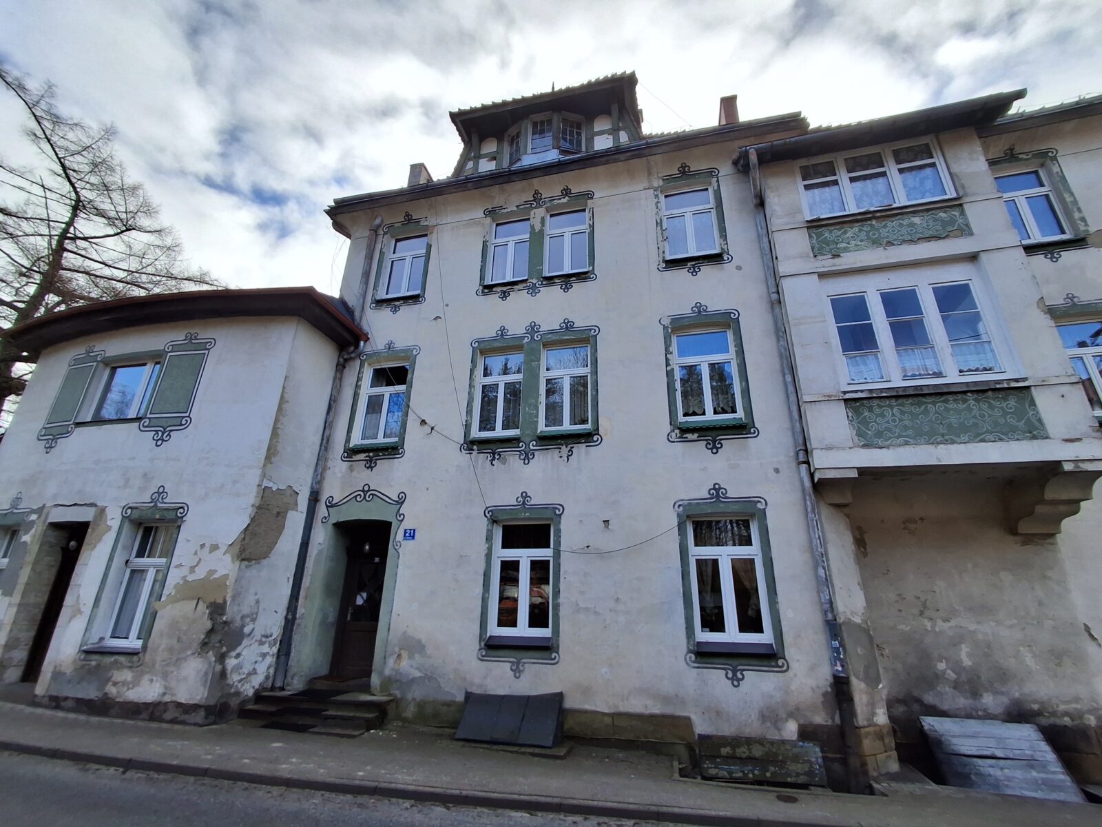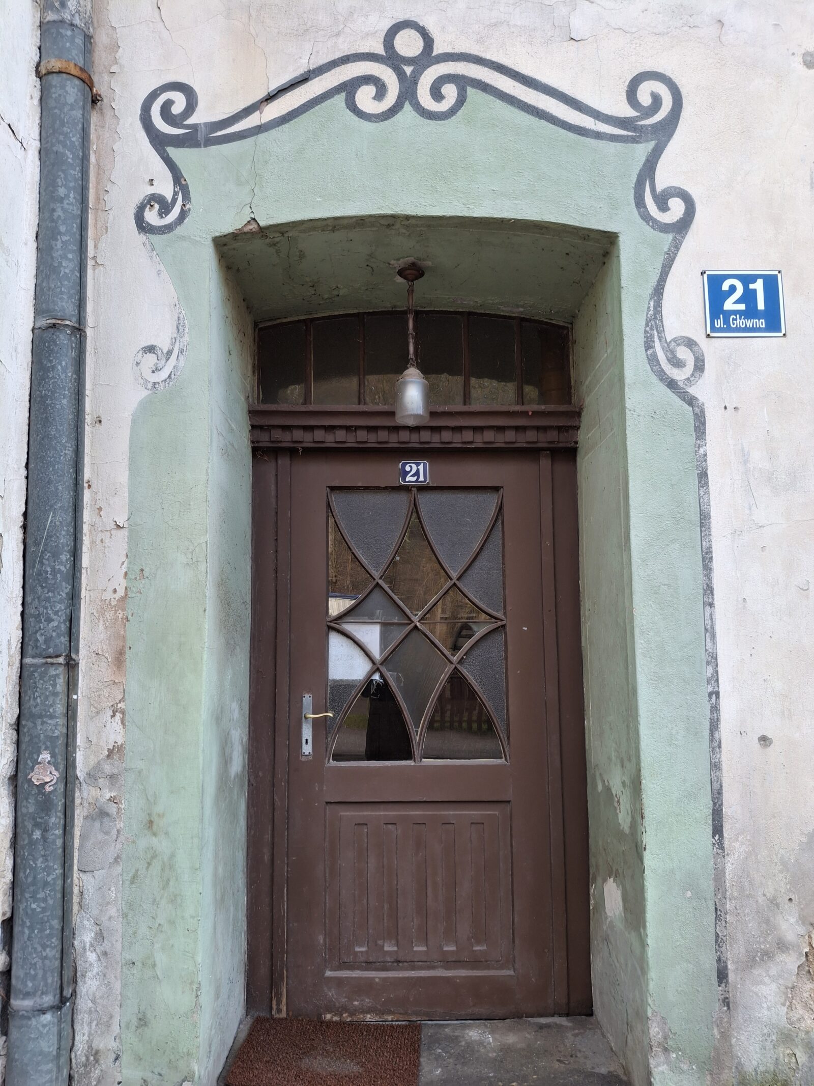 Na elewacji budynku mieszkalnego przy ul. Głównej 21 zachowały się dekoracje malarskie autorstwa Stanisława Pacanowskiego, rozmieszczone wokół otworów okiennych wszystkich kondygnacji. Polichromie tworzą ornamentalne ramy okienne, integralnie związane z architekturą budynku i podporządkowane jego podziałom.