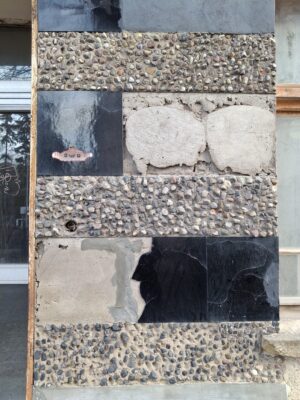 dekoracja elewacyjna parteru / relief tynkarski o charakterze modularnym