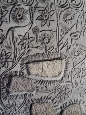 pojedynczy motyw kwiatowy w reliefie: średnica ok. 20–30 cm