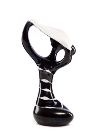 Obiekt wykonano z porcelany, formowanej w formie i wykańczanej ręcznie. Powierzchnia rzeźby została pokryta jednolitym szkliwem, które podkreśla ciągłość bryły i czystość formy, nie odciągając uwagi od konstrukcji przestrzennej. Kolorystyka jest stonowana i podporządkowana formie, zgodnie z zasadami nowoczesnego wzornictwa użytkowego tego okresu.