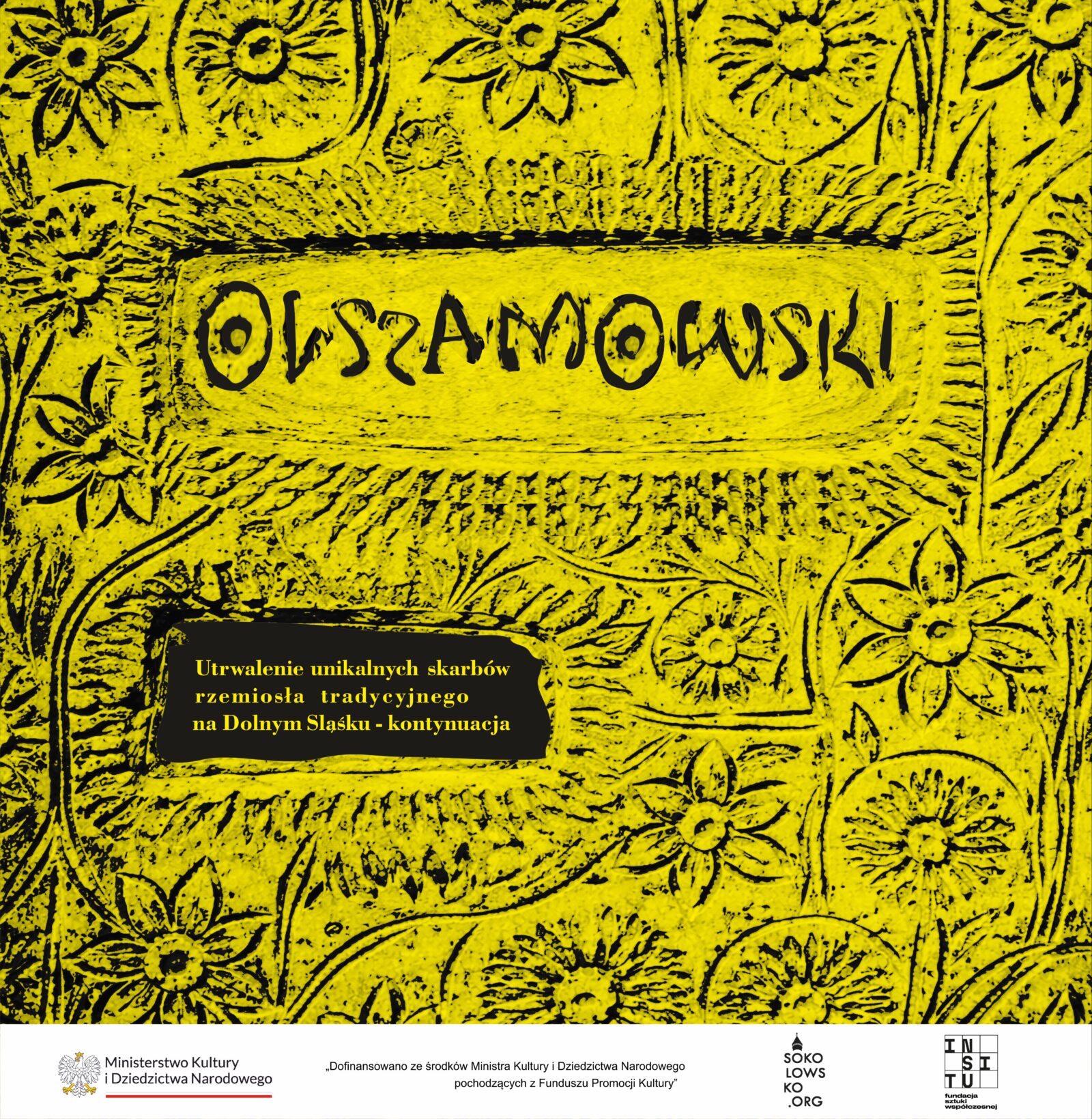 Utrwalenie unikalnych skarbów rzemiosła tradycyjnego na Dolnym Śląsku – kontynuacja to projekt poświęcony dokumentacji i ochronie lokalnego dziedzictwa rzemieślniczego Sokołowska. Poprzez działania edukacyjne, dokumentacyjne i animujące społeczność lokalną przybliżamy twórczość Barbary i Stanisława Olszamowskich oraz Stanisława Pacanowskiego, wzmacniając świadomość kulturową regionu i troskę o tradycyjne rzemiosło.