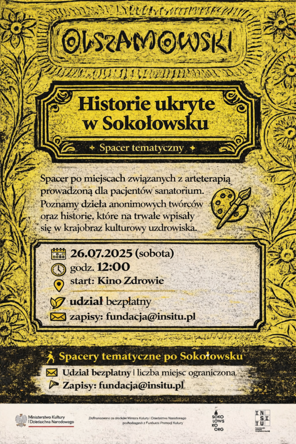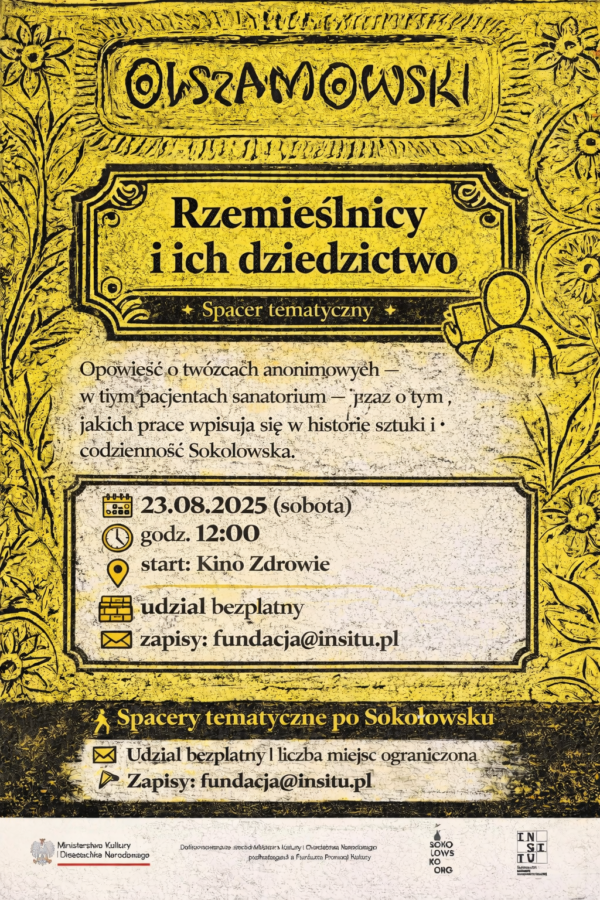 Już wkrótce w Sokołowsku odbędzie się cykl czterech spacerów tematycznych 🚶♀️🚶♂️, poświęconych lokalnemu rzemiosłu, sztuce i architekturze. Spacery poprowadzą uczestników przez mniej oczywiste historie miejscowości — zapisane w fasadach budynków 🏛️, detalach architektonicznych i anonimowych dziełach twórców związanych z uzdrowiskiem.