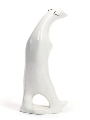 Figurka wykonana została z porcelany, formowanej w formie i wykańczanej ręcznie. Powierzchnia pokryta jest jednolitym szkliwem, które podkreśla ciągłość bryły i subtelność modelunku, a jednocześnie maskuje ślady technologiczne produkcji seryjnej. Kolorystyka jest stonowana i podporządkowana formie, zgodnie z zasadami wzornictwa użytkowego okresu powojennego.
