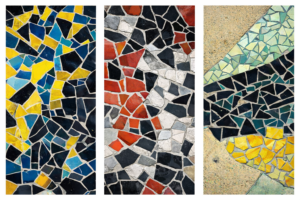 elementy mozaikowe: fragmenty o wielkości od kilku milimetrów do ok. 2–3 cm.